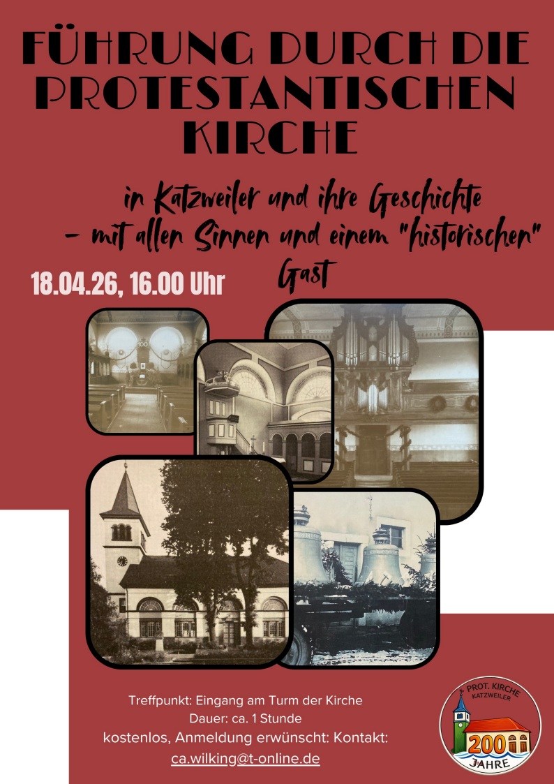 Eine historische Kirchenführung der ev. Kirche. Treffpunkt ist um 16.00 Uhr an der Kirchentür am Turm. Dauer: ca. 1 Stunde, die Teilnahme ist kostenlos.