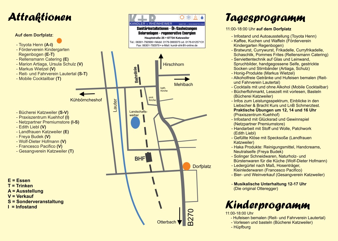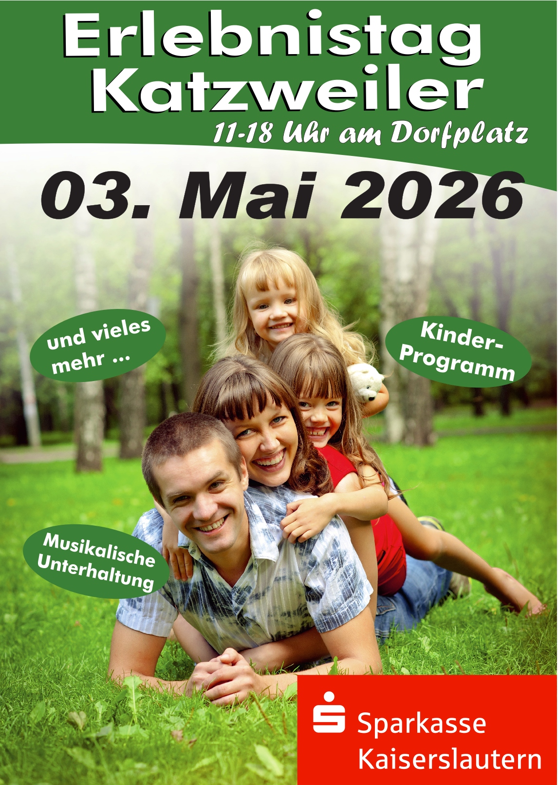 Auch in diesem Jahr findet wieder von 11-18 Uhr der Erlebnistag Katzweiler auf dem Dorfplatz statt.